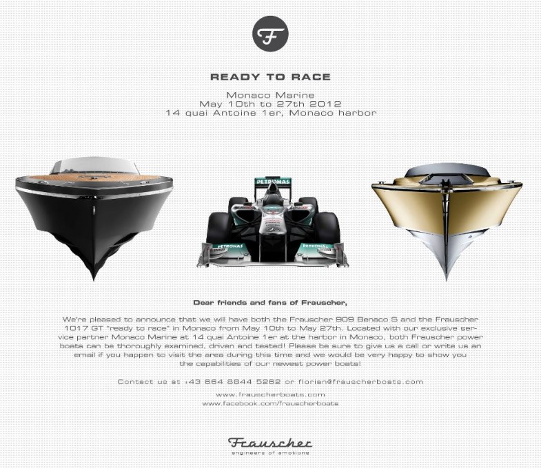 Frauscher is \"ready to race\" in Monaco from May 10th to May 27th with the 909 Benaco S and the 1017 GT!