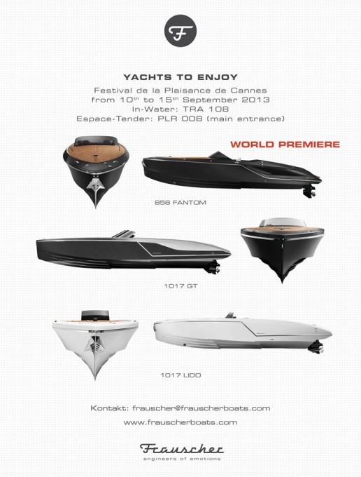 If you want to try the latest Frauscher power boats you should definitely visit our booth at the Cannes Boat Show: We are offering test drives with the 858 Fantom, the 1017 GT and the 1017 Lido!